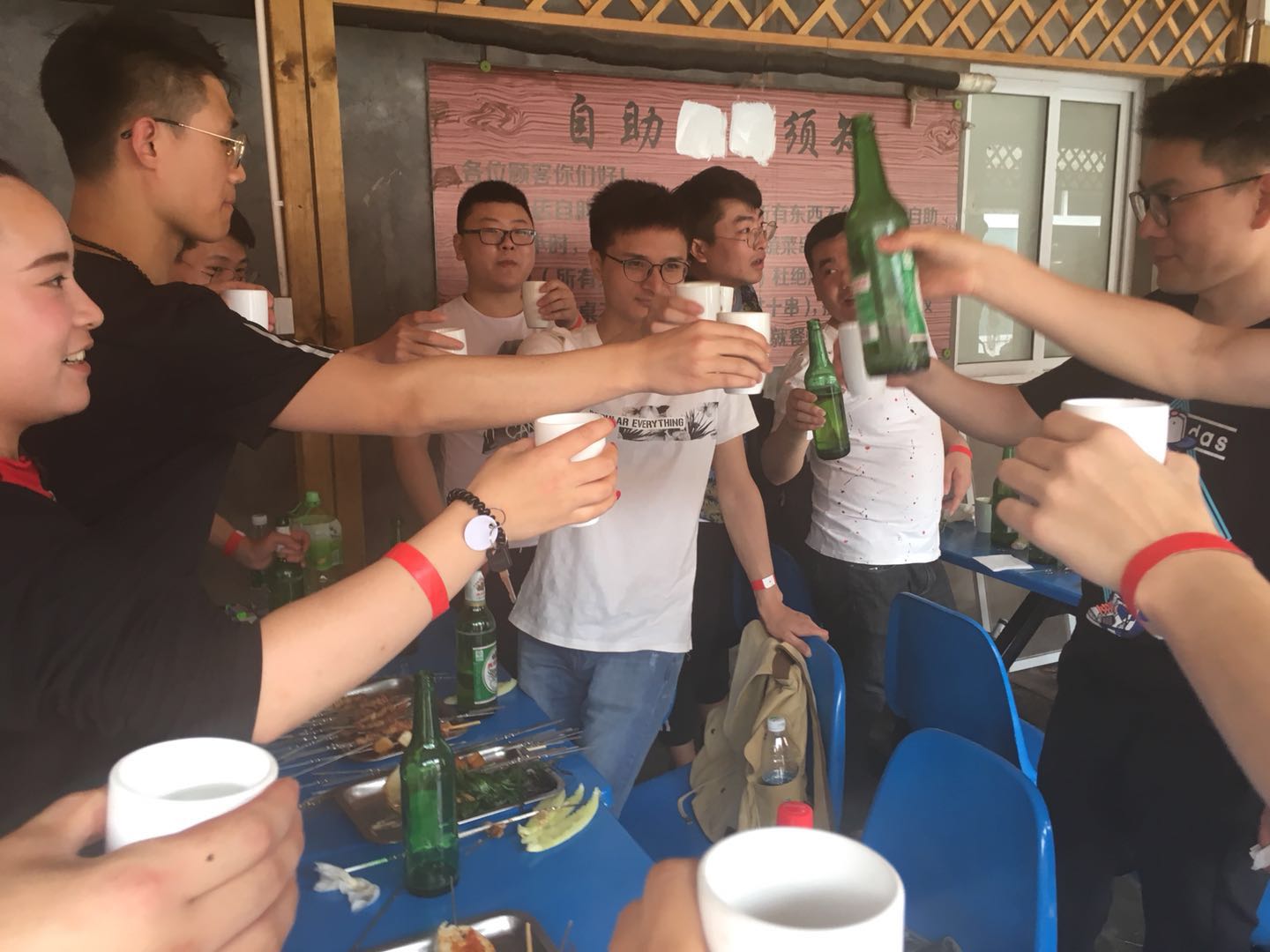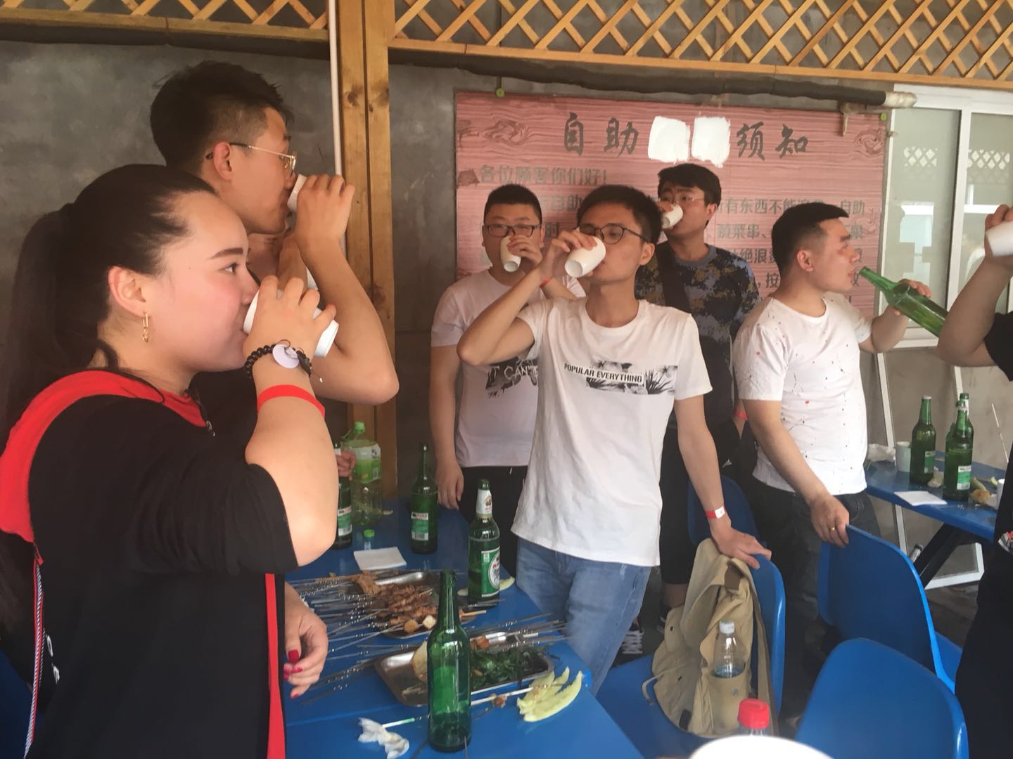 烧烤暂时告一段落,大家举杯畅饮,把酒言欢!